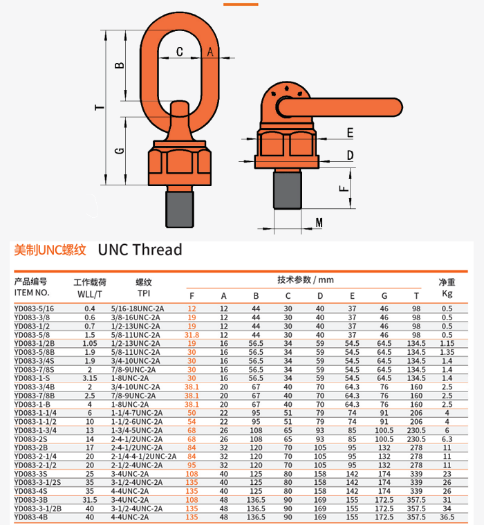 YD083-5/16万向旋转吊环美制UNC螺纹