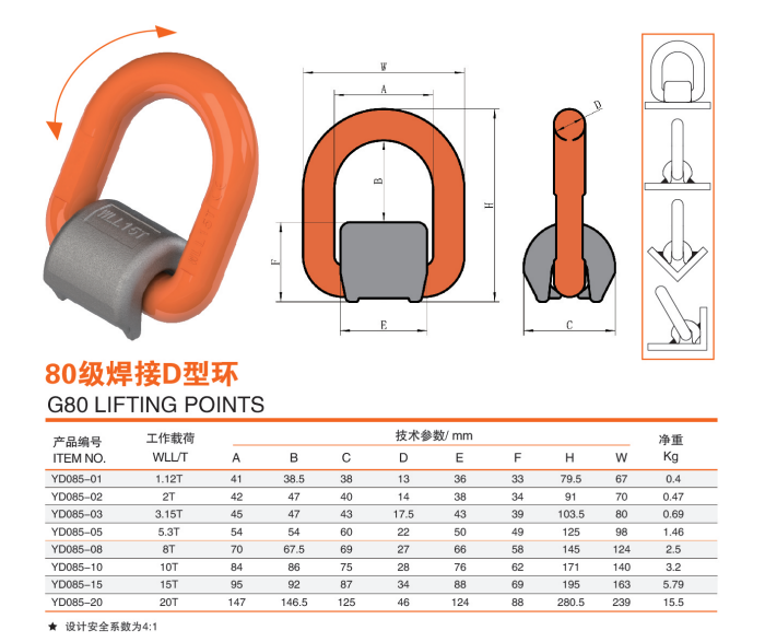 成华1.12吨D型YD085-01G80级焊接吊环